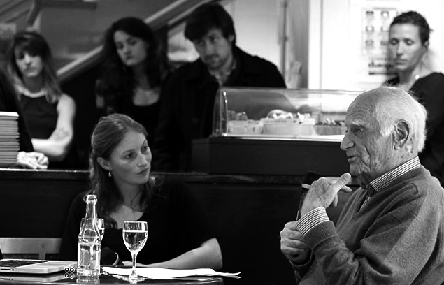 Michel Ser­res im Gespräch mit den Däum­lin­gen (2014)