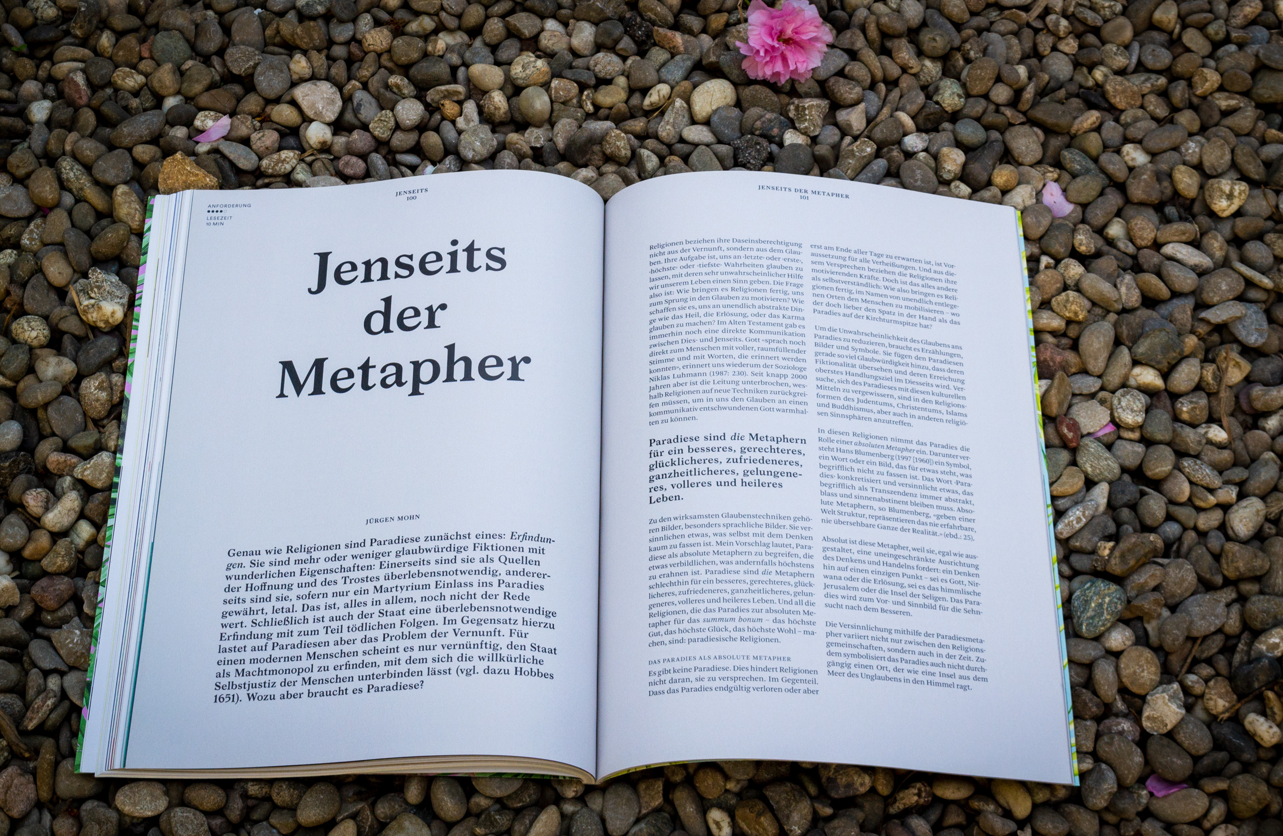 Paradiese sind organisierte Sehnsucht. Paradiese sind Orte, die dank ihrer Architektur und ihrer Grenzen viel über die Bedürfnisse und Träume von Menschen verraten. Selbst wenn die Gärtnerin meint, sich nur nach der Bodenbeschaffenheit zu richten – ihr kleiner Garten Eden wird immer Ausdruck ihres bürgerlichen Strebens sein.